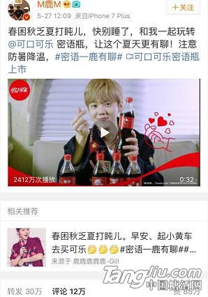 而今年夏天,可口可樂又卷土重來,推出了新款“密語瓶”,產(chǎn)品代言人鹿晗演繹的宣傳片目前已上線,并開始了全方位的線上線下營銷推廣。