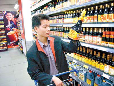 記者在濟(jì)南家樂福超市看到,一銷售人員正向選購醬油的消費(fèi)者推銷含綠茶和普洱茶的醬油。其宣稱用這種醬油做菜不會油膩,口感也特好,尤其適合天熱的時候用。另外,這種醬油烹飪出來的菜肴還格外清新爽口。