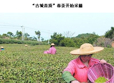 古城青頂茶園總面積350多畝,是我縣最大的茶葉基地。昨天,記者在茶園看到,三五成群的婦女正置身其中,用靈巧的雙手采摘下一片片嫩綠的新芽。