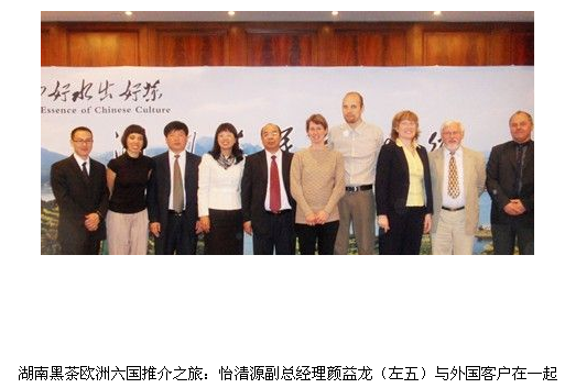 怡清源副總經理顏益龍接受采訪時表示:“隨著中國經濟實力增強,茶文化日益流行。奧運會開幕式上中國就向世界人民展示巨大的‘茶’字;上海世博十大名茶受到外國友人贊嘆;祥和中國節申遺第一茶為怡清源野尖黑茶;廣州亞運會,安化黑茶成為特許禮品茶。”此次怡清源在參展廣州茶博會的同時,受歐洲六國大使館邀請,前往歐洲六國傳播黑茶文化,進行商務洽談,受到歐洲各國的歡迎。