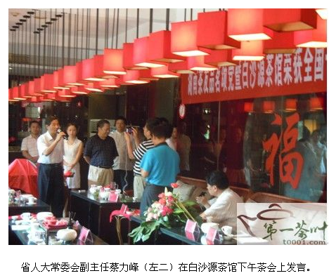 【中國糖酒網(wǎng)茶葉價(jià)格行情與茶葉資訊】湖南省白沙源茶館與北京老舍茶館等另外9家茶館被中國茶葉流通協(xié)會評為“全國十佳特色茶館”。近日,省政府顧問唐之享、省人大常委會副主任蔡力峰在白沙源茶話會上品飲敬意安化黑茶,并對湖南茶業(yè)的發(fā)展做出講話。據(jù)湖南省茶業(yè)協(xié)會統(tǒng)計(jì),我省具有一定規(guī)模的茶館已達(dá)1萬家,包括以白沙源為代表的特色文化經(jīng)營模式以及以怡清源為代表的品牌連鎖經(jīng)營模式,年?duì)I業(yè)額達(dá)150億元。