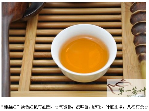 有宋一代,坦洋村即以桂香茶風(fēng)靡海內(nèi),特種坦洋工夫茶茶水內(nèi)蘊(yùn)彌著天然獨(dú)特的桂香味,茶湯既似紅玉凍凝而又光鮮明亮,口感既醇郁圓潤(rùn)而又鮮靈清爽,集眾多矛盾統(tǒng)一性于一身,傳奇魅力,長(zhǎng)令世人為之絕倒。“桂凝紅”屬于特級(jí)坦洋工夫紅茶,名字正是來(lái)源于坦洋工夫的傳統(tǒng)桂香。