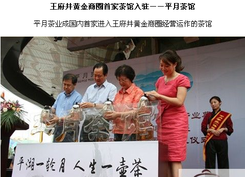 2011年7月16日,北京王府井大街“樂天銀泰”百貨大樓前嘉賓云集,高朋滿座,在茶香、墨香交融彌漫的熱烈氣氛中,平月茶業(yè)創(chuàng)立的王府井“平月茶館”隆重開業(yè)。這是福安茶企也是中國首家進入王府井黃金商圈經(jīng)營運作的紅茶館。