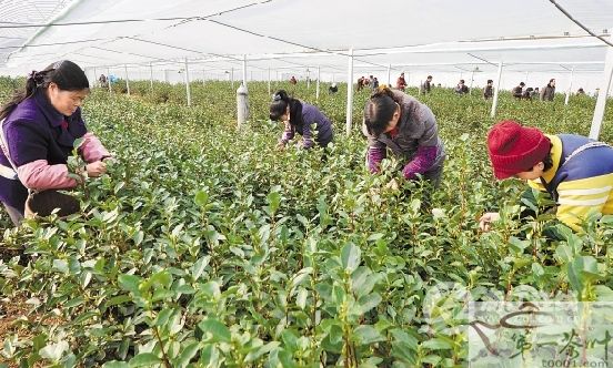 2月19日電春寒料峭,多數茶園的茶芽仍未完全抽出,而淳安縣茶葉良種場科技茶園大棚里的茶葉,經過了漫長冬天孕育滋養,已悄悄抽芽,給茶園平添一份新綠。