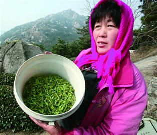 “這個地方的5畝茶園每年都要比別的地方早三五天,其他地方的茶園都還沒開采。”茶園的主人王女士說,這是由這個地方特殊的地形位置決定的,茶樹在南坡上,三面都是山,避風又向陽。正是因為這片地特殊的地理位置,所以它幾乎每年都是嶗山大田新茶采摘時間最早的地塊之一。