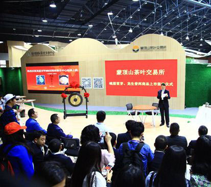 據悉蒙頂山茶葉交易所是全國首家茶葉類專業交易所。蒙頂山茶交所相關負責人攜手峨眉雪芽、龍生普洱相關負責人在位于峨眉山市的四川國際旅游交易博覽中心舉行上市簽約儀式。現場的茶業界同仁,眾多媒體朋友共同見證峨眉雪芽、龍生普洱兩名茶在蒙頂山茶葉交易所上市交易。