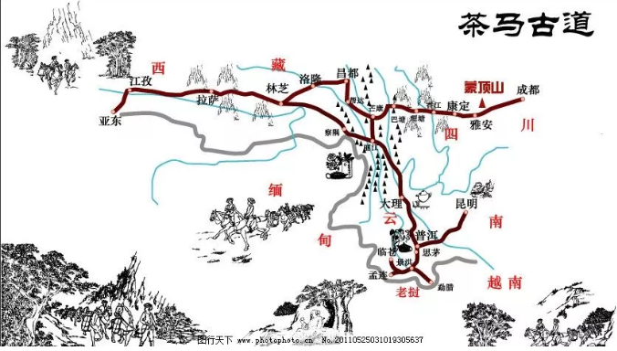 但因青藏高原并不適宜茶樹(shù)生長(zhǎng),茶葉必須從四川、云南、陜西等地肩扛、馬背運(yùn)輸。由此形成的幾條茶馬互市道路,如今則被人們稱之為“茶馬古道”。
