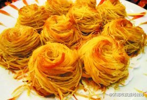 首頁食品飲料地方特產 地方特產 濟南青油盤絲餅 未知 2013-06-04 10:20 地方特產 #濟南特產#【盤絲餅】又叫青油盤絲餅。青油是相對動物油而言,一般用花生油來煎烙。盤絲是指此餅的特色, #濟南特產#【盤絲餅】又叫青油盤絲餅。青油是相對動物油而言,一般用花生油來煎烙。“盤絲”是指此餅的特色,是用傳統的膠東抻面制成的。把面抻至極細,細如發絲,再盤成圓餅型,故名盤絲。這也是制作的關鍵,抻面抻七、八扣,細面絲可達千余根。是宴席上的上品點心,也是濟南的著名小吃。 上一篇青海堂為青海特產的代言人和領軍者青海堂作為青海特產的代言人和領軍者,是以連鎖經營為主要運作模式。目前,青海堂的連鎖店已布局全國各大 上一篇武漢特產:野生荊條樹花蜜、薯尖,和梁港貢米最有代表性黃陂區,武漢市城區以北,是武漢面積最大、人口最多的一個區,有1430年的建城史,與武漢市中心城區一水相 相關文章 青海特產牛肉干歷史悠久 溈山毛尖茶風格獨特 西藏特產拉薩甜茶歷史悠久 四川省資陽簡陽市石橋鎮的著名特產:石橋掛面 崇左市江州區五大特產食品 河南特產美食有哪些? 廣東惠州土特產梅菜是嶺南三大名菜之一 不同城市的包子有不同的特色 黃米粿 農民增收的致富果 商洛臘肉獨具特色