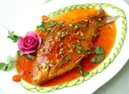 它的做法是多樣的,最常見的是清蒸,遍體涂了鹽,再加紹酒蒸,或是廣式蒸魚法,什么都不放,蒸熟后把水倒掉,再在魚身上放姜、蔥、香菜,淋上蒸魚豉油,起鍋,把油燒熱,“吱”的一下倒到加了調料的魚身上,一下子香氣四溢,倒也頗為勾人心魄,尤其勾引得體內的饞蟲蠢蠢欲動。
