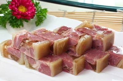 三百多年來,鎮江水晶肴肉一直盛名不衰,馳譽南北,并有新的發展。如按照肴蹄的不同部位,可切成多種肴蹄塊:前蹄上的部分老爪肉,切成片形,狀如眼鏡,其筋纖柔軟,味美鮮香,叫“眼鏡肴”;前蹄旁邊的肉,彎如玉帶形,叫“玉帶鉤肴”;前蹄上的老爪肉,肥瘦兼有,清香柔嫩,叫“三角棱肴”;后蹄上的一塊連同一根細骨的凈瘦肉,叫做“添燈棒肴”,其肉質嫩香酥,最為食精肉者喜愛。