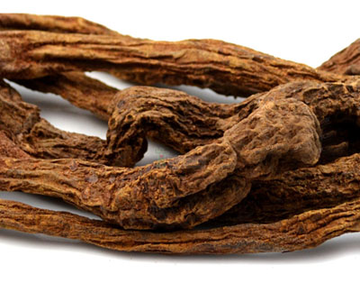 產于海拔4000米以上的野生滋補珍品,呈扁圓柱形,微彎曲,長5~15cm,直徑1.5~5cm。表面棕色或棕褐色,粗糙,具明顯縱溝及不規則凹陷,有的殘存三角形的黑棕色鱗片。體重,質硬,難折斷,斷面淺棕色或棕褐色,有黃色三角狀維管束。氣微,味甘而澀。