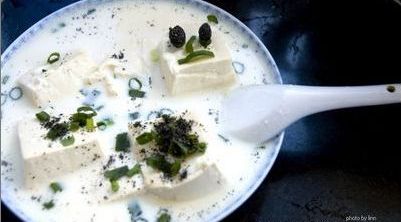 像做普通豆腐湯那樣把豆腐放在牛奶中煮(牛奶中加少許水,防止干鍋),等沸騰后,依照自己的口味假如調(diào)味品即可食用。