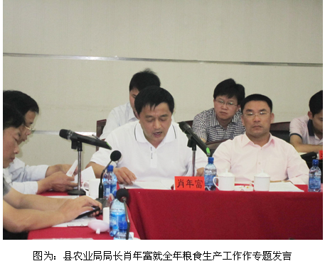 首先,縣農業局局長肖年富就全年糧食生產工作作專題發言。肖年富局長指出,現在是早稻生產進入產量形成期、中稻正在拋栽、晚稻開始備耕備秧的關鍵時期,要從確保糧食安全的高度出發,充分認清當前形勢的重要性與緊迫性:一是積極穩妥推進水田糧食補貼按實發放工作;二是抓好下階段糧食生產的重要環節,抓好早稻田間管理工作,落實好中、晚稻種植面積,并采取堅決措施杜絕晚稻直播;三是強化糧食生產技術服務,做好宣傳、技術指導、辦點、農資監管等工作。