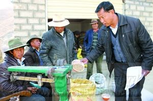 日前,扎囊縣扎其鄉塔巴林村籌措資金2.8萬余元,購買優良青稞種子,免費發放給群眾。圖為3月15日,群眾正在領取種子。本報記者青陽多旦攝