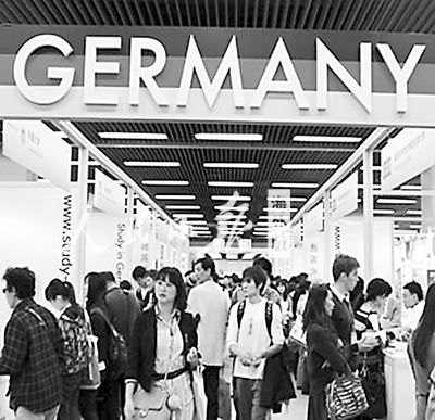 在第十七屆中國國際教育巡回展上,法國、德國等非英語國家的展臺前吸引了許多學生和家長前來咨詢。