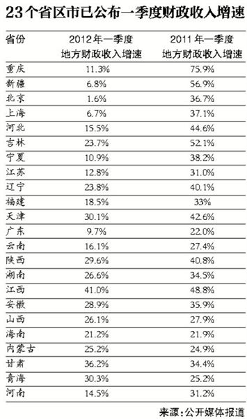 一季度多地方財政收入明顯回落 2012-04-27