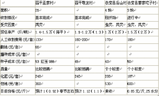 租地費用:上漲約25%農藥費用:上漲約20%整地成本:上漲約60%種子成本:上漲20%-30%化肥成本:上漲約15%人工成本:上漲90%-100%預估單產:下降18.75%吉林玉米也遭受了臺風和蟲害的影響。大部分樣本的減產的幅度在20-30%區間,部門影響大的地區則接近50%。在吉林地區,玉米死秧情況特別明顯,這在往年基本上是沒有出現過的情況。而農戶的生產成本并沒有下降。我們調研的松原市乾安縣讓字鎮往年租地4000元/坰,而今年則增加到5000元;翻地、播種、種子、農藥、化肥以及人工收割費用均較往年出現了明顯的增加。今年吉林地區玉米整體減產250-300萬噸。
