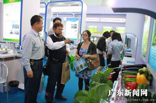 巴基斯坦客商對航天蔬菜愛不釋手。 球形的茄子、一米多長的絲瓜、碧綠的蔬菜在第12屆深圳高交會上,廣東惠
