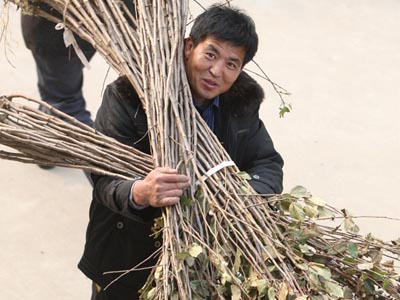 21日中午時分,海陽市朱吳鎮樂畎村果農孫希光,手提幾包作物種子,肩扛一捆蘋果樹苗,快步走向停車點。“人太多,擠了2個多小時,才把東西買齊全。”孫希光說,今年,自己又重新規劃了2畝地,準備擴大種植面積,多增加收益。