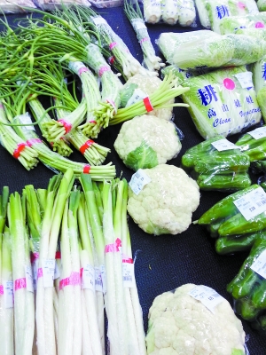多數(shù)超市里,綁菜膠帶光溜溜的,沒有來源、安全標志等信息。有些捆菜的膠帶上雖貼有“天天新鮮”、“天天低價”等標志。