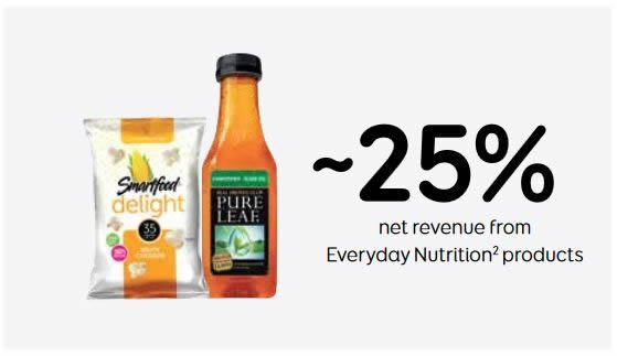 百事將含有谷物、水果、蔬菜、蛋白質的產品以及水、無糖的茶這一類產品歸為“每日營養產品”,在2016年,這一類產品已經占到了凈營收的 25%,觀百事的趨勢,這一占比將不斷擴大。