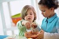 天熱使寶貝每天從汗水中丟失較多維生素C和維生素B1、B2。當身體缺乏這些維生素時,寶貝就會感到身體怠倦,不愿意玩耍,抗病能力也會隨著下降。因此,高溫天氣下維生素C、B1、B2的需要量應比平時多1倍,這樣才能保證身體對這些維生素的攝入量。應讓寶貝每天多吃綠葉蔬菜、苦瓜及冬瓜,這是補充維生素C的最好辦法,還可清涼祛暑。