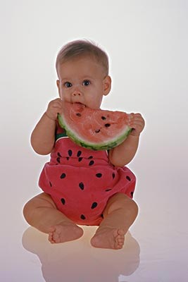 西瓜 西瓜不僅有清熱解暑、涼血止渴的作用,還可以預(yù)防痱子的發(fā)生。將西瓜皮洗凈切片熬湯,或制作菜肴食用