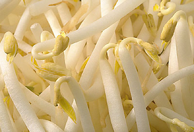 黃豆芽含有大量蛋白質、維生素 C、纖維素等,蛋白質是生長組織細胞的主要原料,能修復生產時損傷的組織,維生素 C能增加血管壁的彈性和韌性,防止出血,纖維素能通腸潤便,預防便秘。