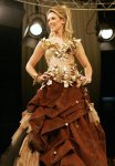 10月28日,在法國巴黎舉行的巧克力沙龍上,模特在展示巧克力時(shí)裝。當(dāng)日,第12屆巧克力沙龍?jiān)诎屠栝_幕,來自世界各地的130多家巧克力制造商參展。 在第14屆巴黎巧克力沙龍即將拉開帷幕之際,來自法國巧克力行業(yè)工會的消息指出,盡管從美國蔓延到全球的金融危機(jī)愈演愈烈