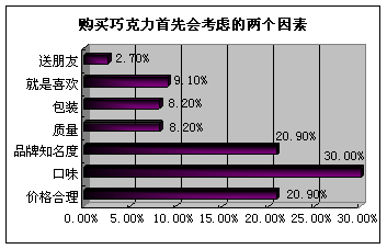 消費(fèi)者購買巧克力關(guān)注的因素是口味、品牌和價格