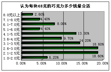 七成以上消費(fèi)者認(rèn)為每塊48克巧克力價格在2-5元最合適