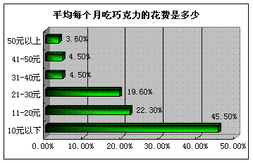 八成消費(fèi)者每月吃巧克力的花費(fèi)在30元以下