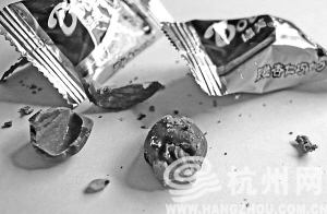 香滑的果仁巧克力,一向深受消費(fèi)者歡迎,被許多人當(dāng)成饋贈(zèng)親友的禮品。前幾天,陳女士就因參加婚禮分到幾盒德芙原粒杏仁巧克力。沒想到的是,一顆巧克力里竟然吃出了三條活生生的蟲子。