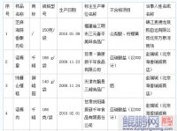 7批次不合格食品為:沈陽市萬家樂食品廠的香蕉酥(膨化食品)(28g/袋2009-12-17)鋁項目不合格;沈陽市唐偉龍食品加工廠的極品臭豆腐(麻辣面食制品)(40g/袋2010-1-18)糖精鈉甜蜜素項目不合格;沈陽市新湘平食品廠的烤香腸(調味面制食品)(400g/袋2010-1-20)甜蜜素項目不合格;沈陽市于洪區周方貴食品廠的筋頭巴腦(調味面制品)(50g/袋2010-1-15)甜蜜素項目不合格;沈陽市香味源食品廠的東方片(麻辣面食)(450g/袋2010-1-23)鋁、糖精鈉項目不合格;沈陽市鐵西區靜林佳食品廠的野雞脖(調味面制品)(40g/袋2010-1-13)甜蜜素項目不合格;沈陽市鑫寶佳食品有限公司的比客薯片(香蔥味)(55g/袋2010-1-21)鋁、糖精鈉項目不合格。