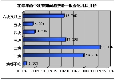 在每年中秋節期間七成消費者會吃1-3塊月餅