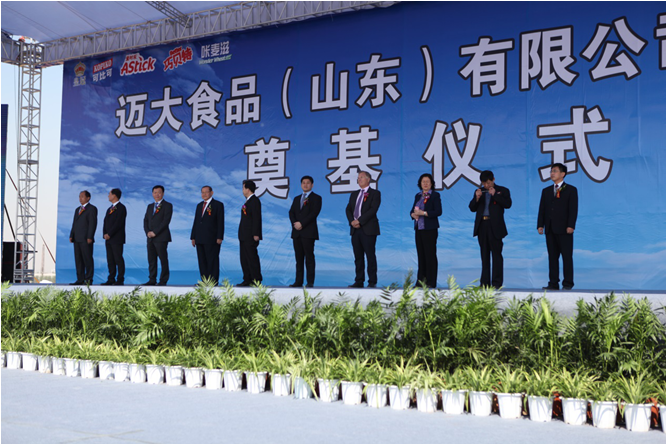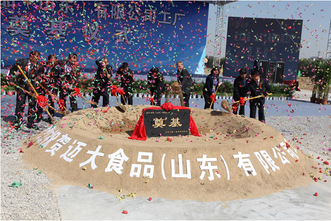 作為邁大集團全球化策略中的重要一步,新工廠位于濟南市以北的濟陽縣濟北工業(yè)園區(qū)內(nèi),并正式命名為“邁大食品(山東)有限公司”。當(dāng)天上午,濟陽縣政府、各界媒體以及邁大高層等多名代表齊聚濟北工業(yè)園內(nèi),一同出席了此次奠基儀式。