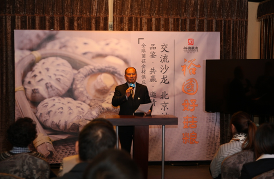 活動現場,裕國股份董事長雷于國先生向來賓介紹了香菇行業的現狀及行業發展的趨勢,現場介紹了裕國香菇研究院的最新成果,展示并介紹了10個不同品種的棒棒菌——這是中國傳統食用菌企業首次在文創產品領域的突破創新。活動中,裕國副總經理朱自平先生就裕國股份十二五發展成果和“裕國好菇糧”活動做了發言。