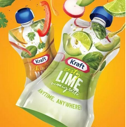 這款Kraft Anytime! Anywhere!系列的立袋包裝于2016年年初上市,它既便攜又可以重復密封,使消費者能夠方便的調整沙拉醬的份量。