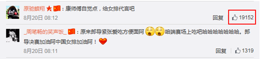 陳一冰、史冬鵬等是面館常客,而郎平在女排決賽前“背著隊員”偷偷煮面的視頻,猶如扔到微博的一枚炸彈,萬名網(wǎng)友集贊呼吁“康師傅簽約女排”。