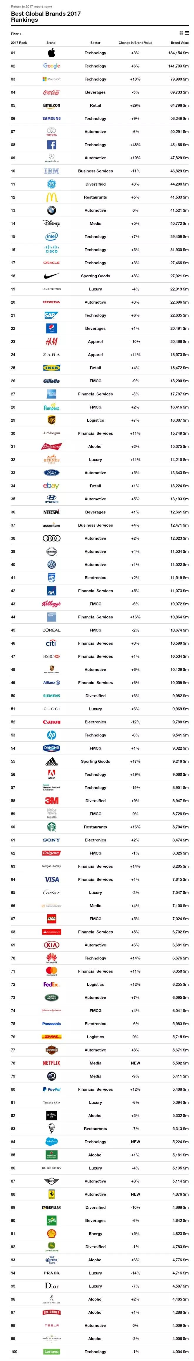 來源:Best Global Brands 2017 Rankings),食品板制表