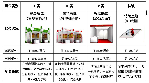 1、展位費用:注:雙面開口展位加收1000元角位費