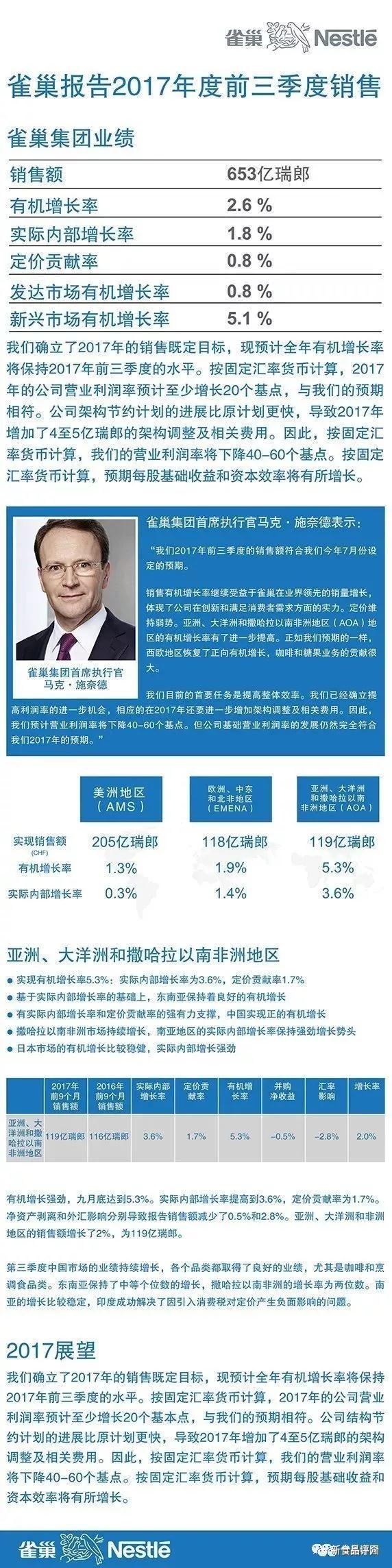 今年財富中文網與全球同步發布了最新的《財富》世界500強排行榜中,食品飲料行業的國際巨頭排名普遍下滑,只有雀巢是在沒有發生顯著收購下而排名上升的。