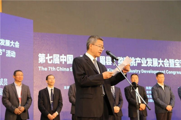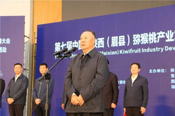 開幕式由陜西省人民政府副秘書長蘭建文主持,寶雞市人民政府市長惠進才致辭;陜西省農業廳黨組成員、省果業管理局局長高武斌介紹了陜西獼猴桃產業發展情況;寶雞市人民政府副市長高建華介紹了寶雞市慶祝首屆“中國農民豐收節”活動安排情況;中國園藝學會獼猴桃分會理事長、中國科學院武漢植物園研究員鐘彩虹講述了獼猴桃分會發展情況及陜西眉縣獼猴桃的品質和資源優勢;陜西省政協副主席王二虎,中國綠色食品發展中心辦公室副主任時松凱,陜西省教育廳副巡視員韓忠誠分別向眉縣授予“全國平安農機示范縣”“全國綠色食品原料(獼猴桃)標準化生產基地”“國家級農村職業教育和成人教育示范縣”匾牌;陜西省政協副主席祝列克作了講話。最后,第十一屆全國政協副主席白立忱宣布了第七屆中國·陜西(眉縣)獼猴桃產業發展大會開幕。