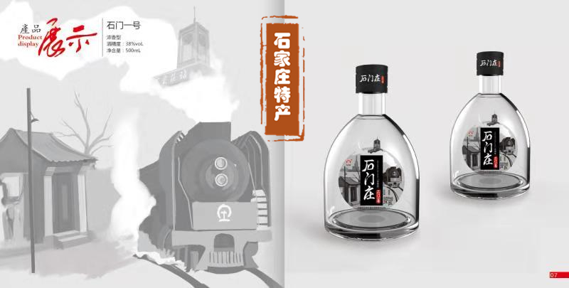 石門莊一號設計來源于未來在規劃中的石家莊一號地標——中央商務區,而二號分為500ml裝和250ml裝兩款產品,做最有情懷的小酒。