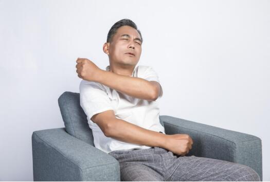 并且,肩周炎早期時,肩關節向各方向活動均可受限,以外展、上舉、內外旋更為明顯,當肩關節外展時出現典型的“扛肩”現象,嚴重時肘關節功能也可受影響。