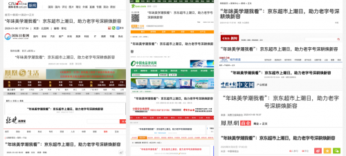 而在站外,除了和老字號品牌現(xiàn)有的社會媒體賬號緊密聯(lián)合互動,將“京東超市·干貨食品+老字號=上潮日”的公式植入人心,同時又聯(lián)合國內有公信力的知名新聞類大媒體,如人民網(wǎng)、鳳凰網(wǎng)等,進行國潮品牌煥新大事件的行業(yè)報道,從創(chuàng)新數(shù)據(jù)、行業(yè)標準等給予可靠的信息傳遞。