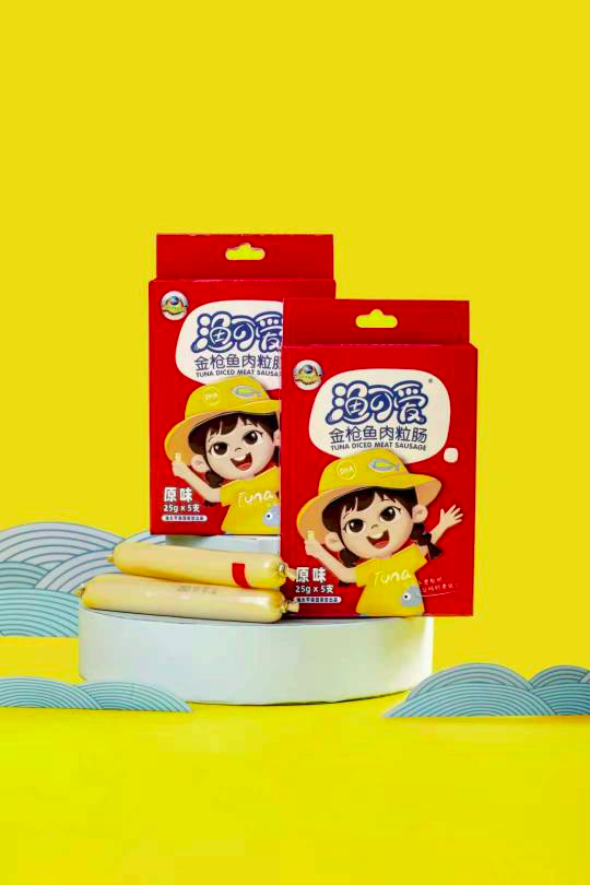 有了優質原料,如何保證金槍魚肉粒腸在加工過程中的營養與安全,這是漁可愛研發團隊面臨的最大挑戰。在長達三年多的研發期中,為了實現添加劑少添加和掌握金槍魚肉DHA無破壞加工工藝,孫曉彤帶領研發團隊,在三年的時間里走遍了國內多個魚腸加工廠,拜訪了多家專業機構的業內資深專家,使用了幾千公斤的金槍魚魚肉進行深度研發,終于在2020年底實現了工藝的定型,一款少鹽高鈣高蛋白無反式脂肪富含DHA,只選用出口級原料和健康配料,嚴格執行肉腸類食品國家標準,符合3-12歲兒童食用的金槍魚肉粒腸終于研發成功開始推向市場,并獲得了中國遠洋漁業協會的大力推薦,所有的產品包裝上,都印有中國遠洋漁業協會授權的“中國遠洋漁業產品”徽標。