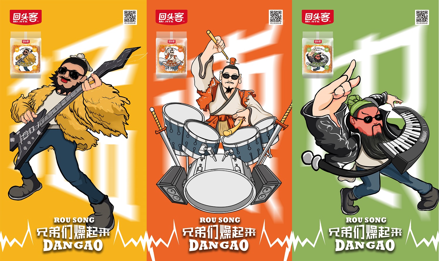 回頭客肉松蛋糕與另一大IP“三國(guó)演義”進(jìn)行結(jié)合,選取劉備、關(guān)羽、張飛等英雄形象,提煉其人格品質(zhì),如:關(guān)羽的義薄云天,張飛的勇猛善戰(zhàn),劉備的宅心仁厚與“兄弟們?cè)锲饋?lái)”、“人生短短急個(gè)球”等現(xiàn)代搖滾風(fēng)格的文案結(jié)合,今古融合,形成認(rèn)知反轉(zhuǎn),創(chuàng)意十足。