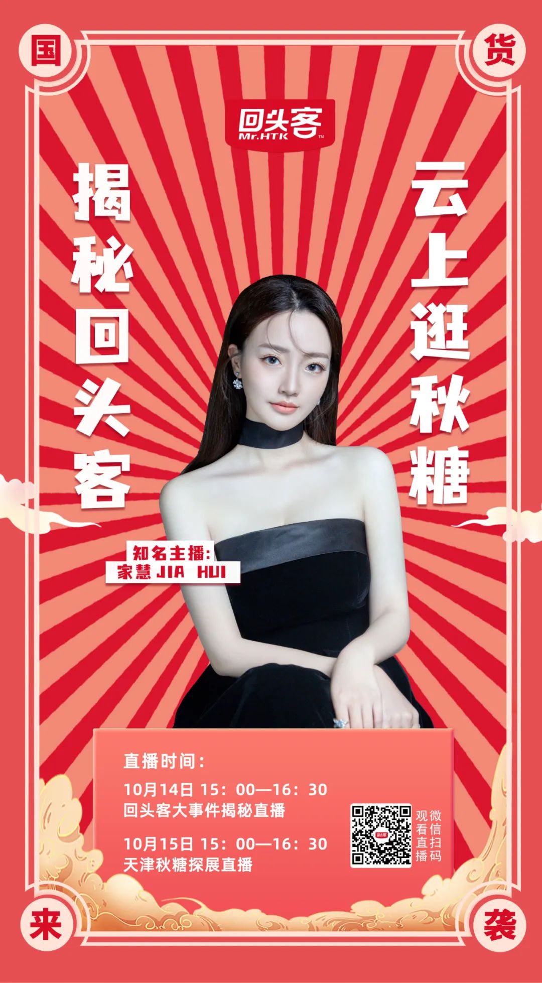 同時(shí),10月14日-15日期間,回頭客還將發(fā)起系列云直播,發(fā)起揭秘回頭客,云上逛秋糖系列活動(dòng)!