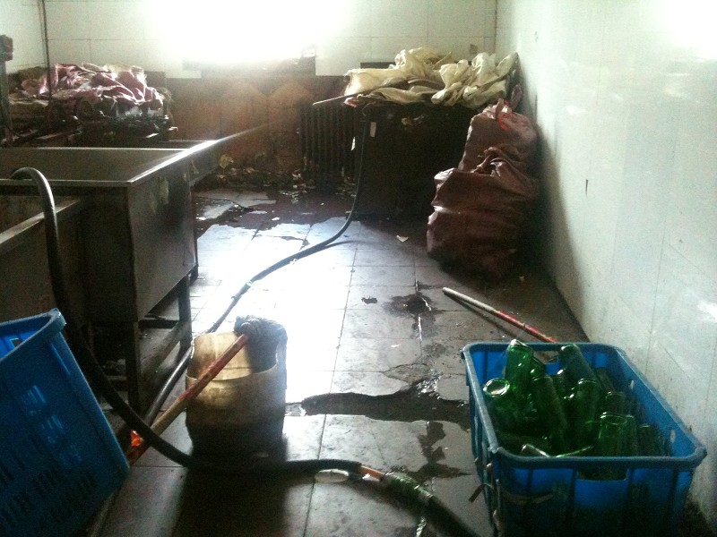 記者看到,屋里有200多個平方米,被隔出發酵間、清洗間、包裝間,最里面一間房堆放著一些啤酒瓶,有清洗干凈的,也有未清洗的空啤酒瓶(如右圖)。空啤酒瓶瓶頸處的“青島啤酒”字樣很突出。